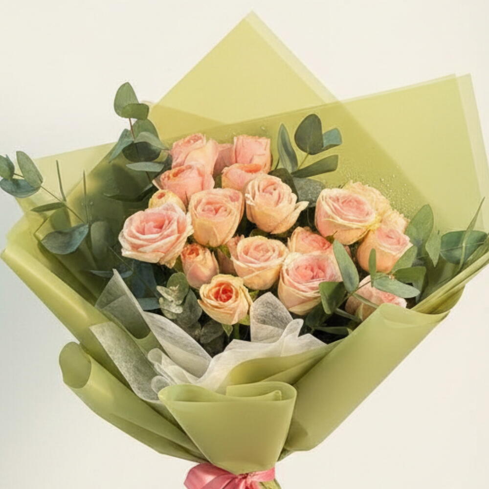 Wrapping - 2 pcs eucalyptus leaves - 2 pcs bombastic madam spray rose - 5 pcs