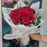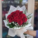 Passionate and timeless, the Scarlet Devotion bouquet showcases 15 velvety red roses embraced by lush greenery and two full stems of delicate gypsophila. The contrast of bold crimson and airy white creates a striking display of romance and elegance, making this bouquet a classic choice for love, celebration, and heartfelt moments. 🌹 Premium 15-stem red rose bouquet 🌹 Accented with lush greenery big gypsophila stems 🌹 Hand-wrapped with elegant ribbon finish 🌹 Same-day Express delivery available in Dubai Order now and let the fiery beauty of red roses express the deepest emotions.