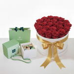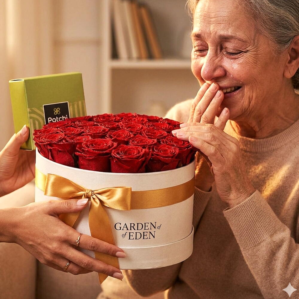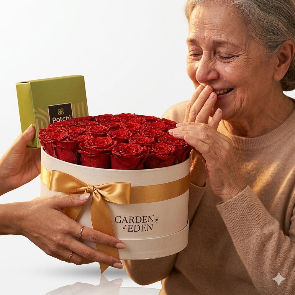 Scarlet Grace — 21 Red Roses Patchi Chocolate | Garden of Eden Luxury Box Some gifts are unwrapped. This one is unveiled. The Scarlet Grace is Garden of Edens most iconic creation — twenty-one long-stem premium red roses arranged in a full, lush dome inside our signature white Garden of Eden cylinder box, tied with a signature gold satin ribbon, and paired with a premium Patchi chocolate box. Two of the worlds most prestigious luxury names. One unforgettable gift. Open the box. Watch everything change. Why Scarlet Grace is extraordinary: ✔ 21 premium long-stem red roses — deep scarlet, hand-selected at peak bloom ✔ Signature Garden of Eden white luxury cylinder box ✔ Gold satin ribbon bow — the bow that photographs itself ✔ Premium Patchi Chocolate Box — the Middle Easts most prestigious chocolate brand ✔ Personalised message card — your words, our artistry ✔ Same-day delivery across Dubai Why 21? Because twenty was never enough. Because the twenty-first rose is the one that says I meant every single one. Why Patchi? Since 1974, Patchi has been the chocolate of choice for the regions most discerning occasions — weddings, royal gifting, Eid celebrations, and the moments that matter most. Paired with our Scarlet Grace roses, it creates a gift experience that is simply without rival in Dubai. Perfect for: ❤️ Anniversary — for the love that has earned this 💍 Proposals — the box that sets the scene 🎂 Milestone Birthdays — for the person who deserves extraordinary 🌙 Eid Al Adha — premium gifting that honours the occasion 👑 Corporate VIP — the client gift that builds relationships ✨ Just Because — always the most powerful reason Same-day delivery across Dubai. Corporate and bulk orders welcome. 🌹🍫
