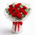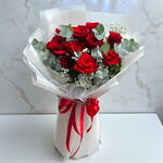 Unleash an unforgettable declaration of love with Passions Embrace – a breathtaking bouquet of 11 premium, long-stemmed fresh red roses. Hand-picked for their vibrant color and velvety petals, each rose is a timeless symbol of deep passion, unwavering devotion, and heartfelt romance, making it the ultimate surprise for your beloved. The Quintessential Romantic Gesture: 11 Exquisite Red Roses: Eleven is a classic number in floristry, often signifying you are my cherished one. Our roses are meticulously selected for their rich, crimson hues and perfect bloom, guaranteeing a truly impactful gift. Symbol of True Love: Red roses are the universal emblem of love and passion. This bouquet speaks volumes without saying a word, making it ideal for expressing your profound affection. Unparalleled Freshness: Sourced from the finest growers, our roses are delivered fresh, ensuring maximum beauty and longevity to extend your romantic gesture. (A complimentary care guide is included to keep them blooming.) Artisan Hand-Tied Presentation: Expertly arranged and beautifully wrapped to enhance the roses natural elegance, this bouquet promises a stunning and memorable unboxing experience. The Ultimate Romantic Surprise: Perfect for anniversaries, Valentines Day, proposals, birthdays, or simply to say I love you in the most magnificent way possible. Reliable Same-Day Romantic Delivery in Dubai: Trust us to deliver your heartfelt surprise swiftly and carefully across Dubai, ensuring your message of love arrives fresh and punctually to dazzle your special someone. Caring for Your Passions Embrace Roses: To ensure your beautiful red roses stay vibrant, gently unwrap your bouquet upon arrival. Re-cut approximately 1 inch from each stem at an angle under running water. Place them in a clean vase filled with fresh water and the provided flower food. Change the water every two days. Keep away from direct sunlight, heat sources, and ripening fruit to preserve their exquisite beauty.