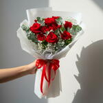 Red rose - 11 pcs Gypsophila - 1 pcs eucalyptus leaves - 2 pcs