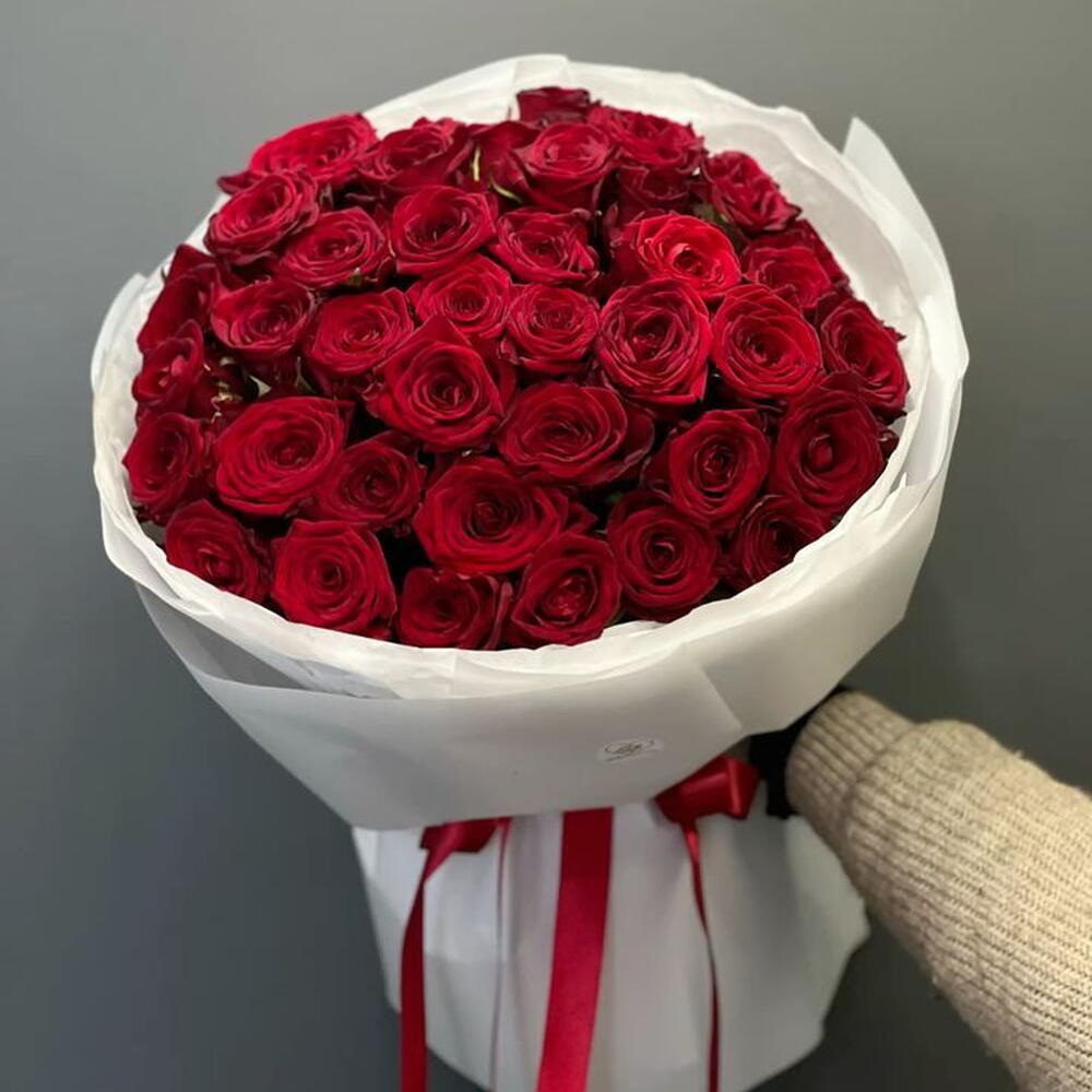 The Scarlet Royale Rose Bouquet is a timeless expression of love and luxury. Featuring a lush arrangement of premium red roses, beautifully wrapped in crisp white sheets and finished with a classic red ribbon, this bouquet is perfect for romantic gestures, anniversaries, and special celebrations. Its bold color and refined presentation make it a standout choice for unforgettable moments.