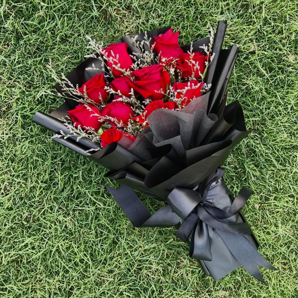 This exquisite Mono Bouquet masterfully combines the romantic allure of 11 red roses, heralding love and passion, with the fascinating charm of 10 stems of delicate lumonium. Made with utmost care and a keen sense of aesthetics, each bloom spellbinds with its radiance and freshness. A perfect choice to express your deep emotions, this composition is more than a bouquet, its a symphony of sentiment that never fails to impress.