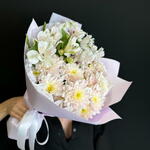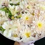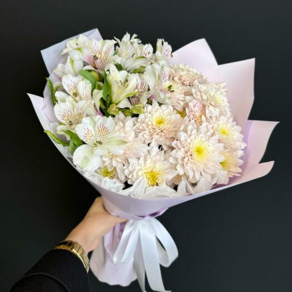 Satin ribbon - 1 pcs Alstroemeria - 4 pcs chrysanthemum bush - 4 pcs design packaging - 1 pcs