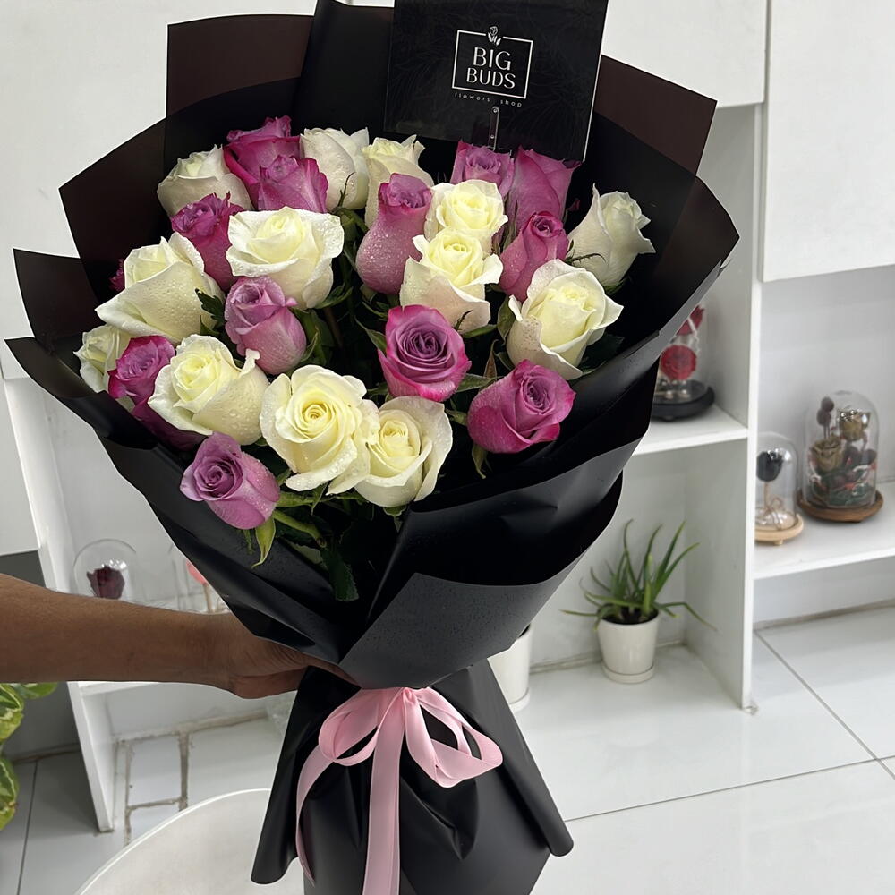 purple roses - 12 pcs white roses polyster - 13 pcs