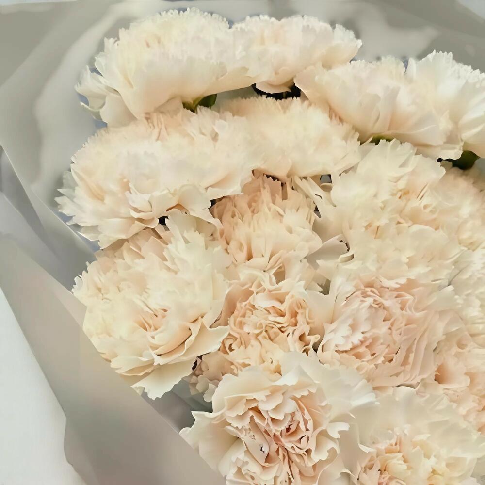 The Shaneal Corniche Beach Rose Bouquet is a timeless expression of elegance and charm. Featuring 49 exquisite Corniche Beach roses known for their soft ivory-blush tones and velvety petals, this bouquet exudes sophistication and grace. Carefully wrapped in stylish matte paper with six white rabink accents and tied with two off-white satin ribbons, the bouquet offers a gentle, luxurious presentation perfect for birthdays, anniversaries, declarations of love, or simply to elevate someone’s day with beauty and tenderness. Care Instructions: To preserve the freshness and beauty of your bouquet, trim the stems at a 45-degree angle with a sharp knife or secateurs before placing them in a clean vase filled with cold water. Change the water daily and recut the stems slightly each time for better hydration. Keep the bouquet away from heat sources, direct sunlight, kitchen fumes, and drafts. A cooler environment will keep the roses vibrant and blooming beautifully for as long as possible.