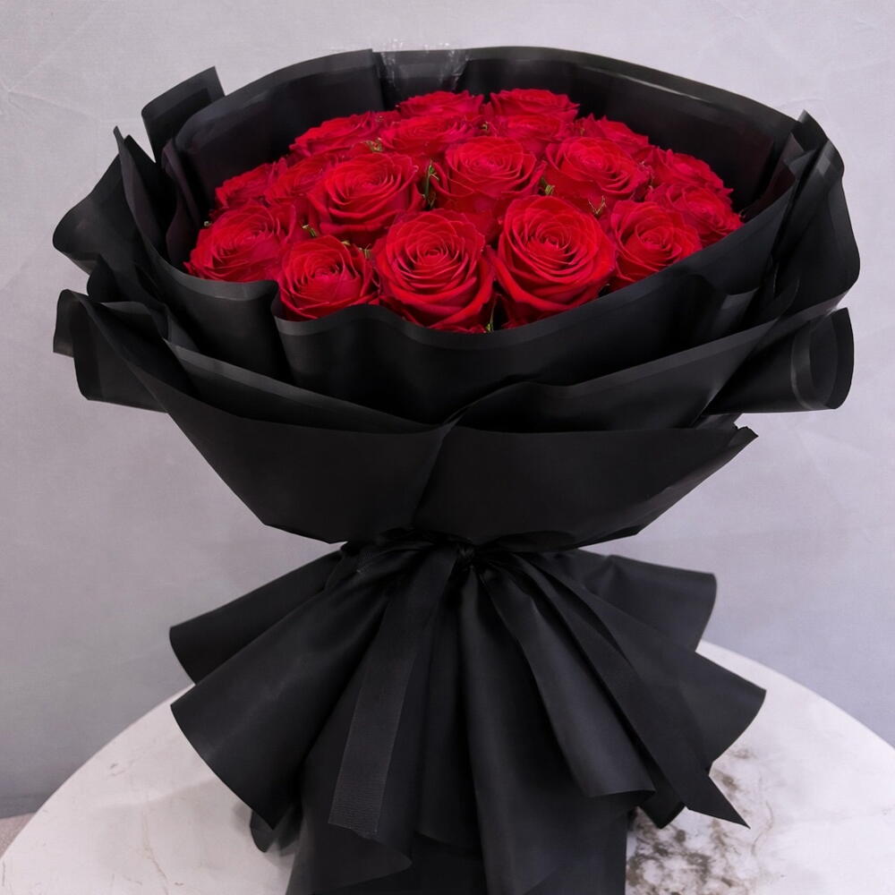 Indulge in the elegance of this Mono Bouquet, comprised of 25 passionately red roses, each hand-selected for their beauty and vibrancy. Encased in 5 sheets of premium wrapping paper and tied off with 2 delicate satin ribbons, it emanates a mesmerizing allure that is perfect for all occasions.