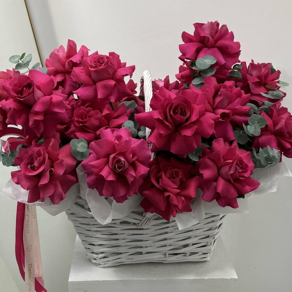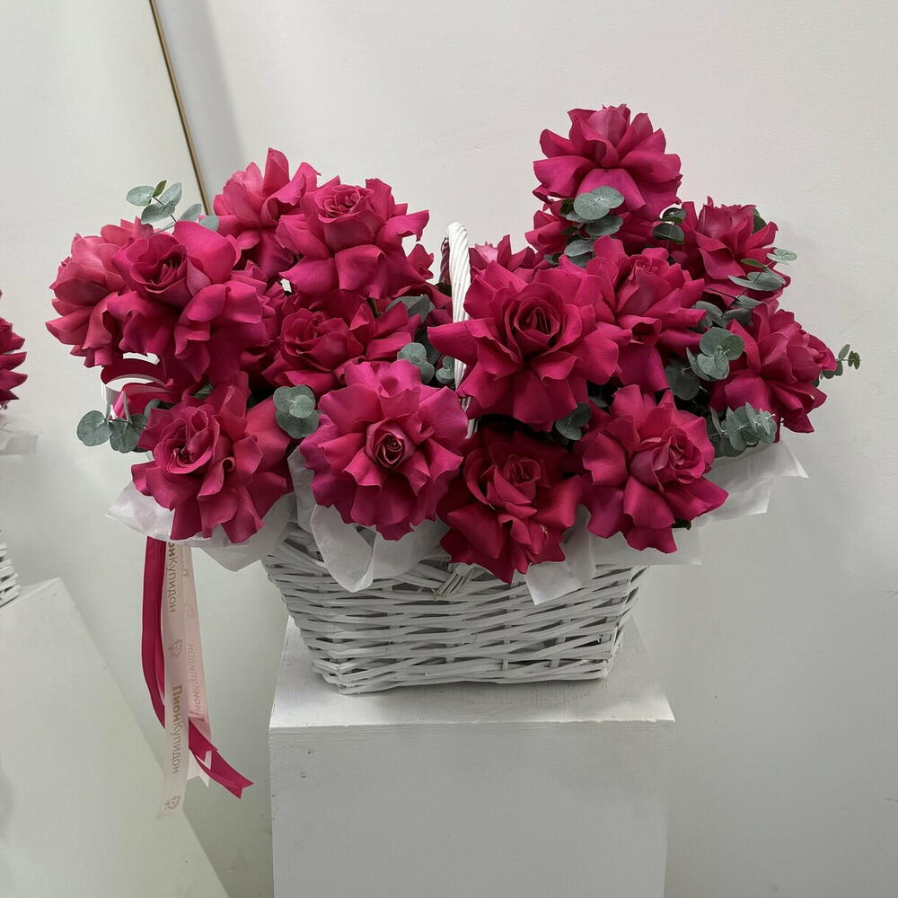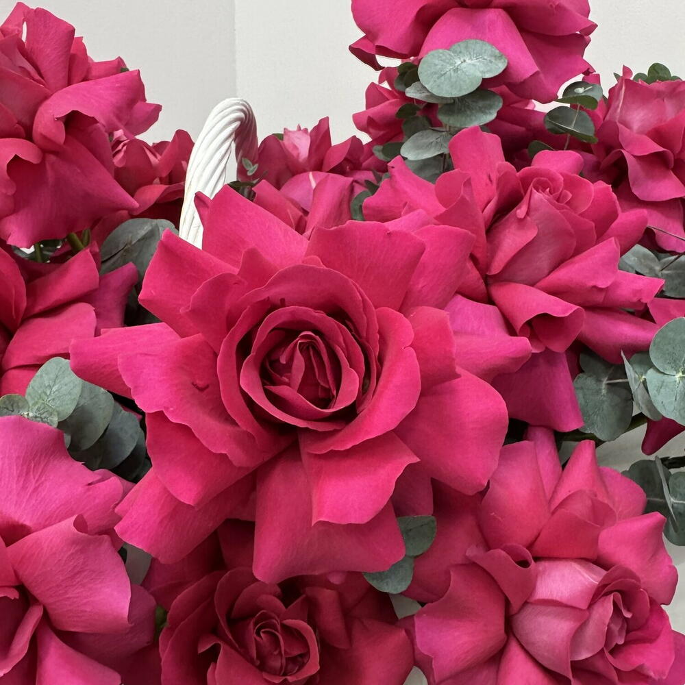 Eucalyptus - 20 pcs Basket - 1 pcs hot pink french roses - 51 pcs
