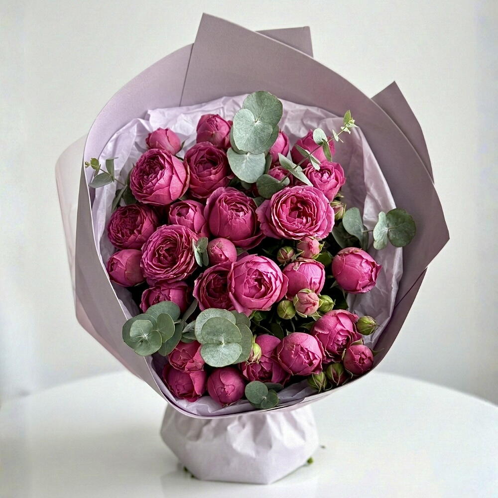 Eucalyptus - 3 pcs pink peony roses - 11 pcs