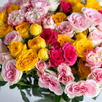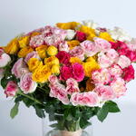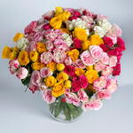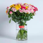 31 stems mixed baby roses arranged in a cylinder glass vase