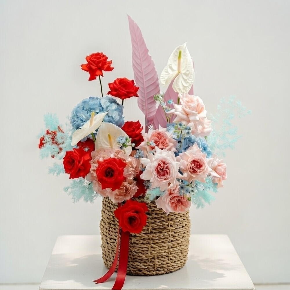 Sky Blue Crimson Artistic Basket