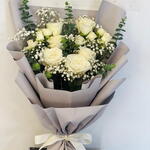 Eucalyptus - 3 pcs White rose - 6 pcs Gypsophila - 3 pcs white baby rose - 2 pcs