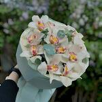 eucalyptus leaves - 4 pcs white cymbidium orchid heads - 10 pcs