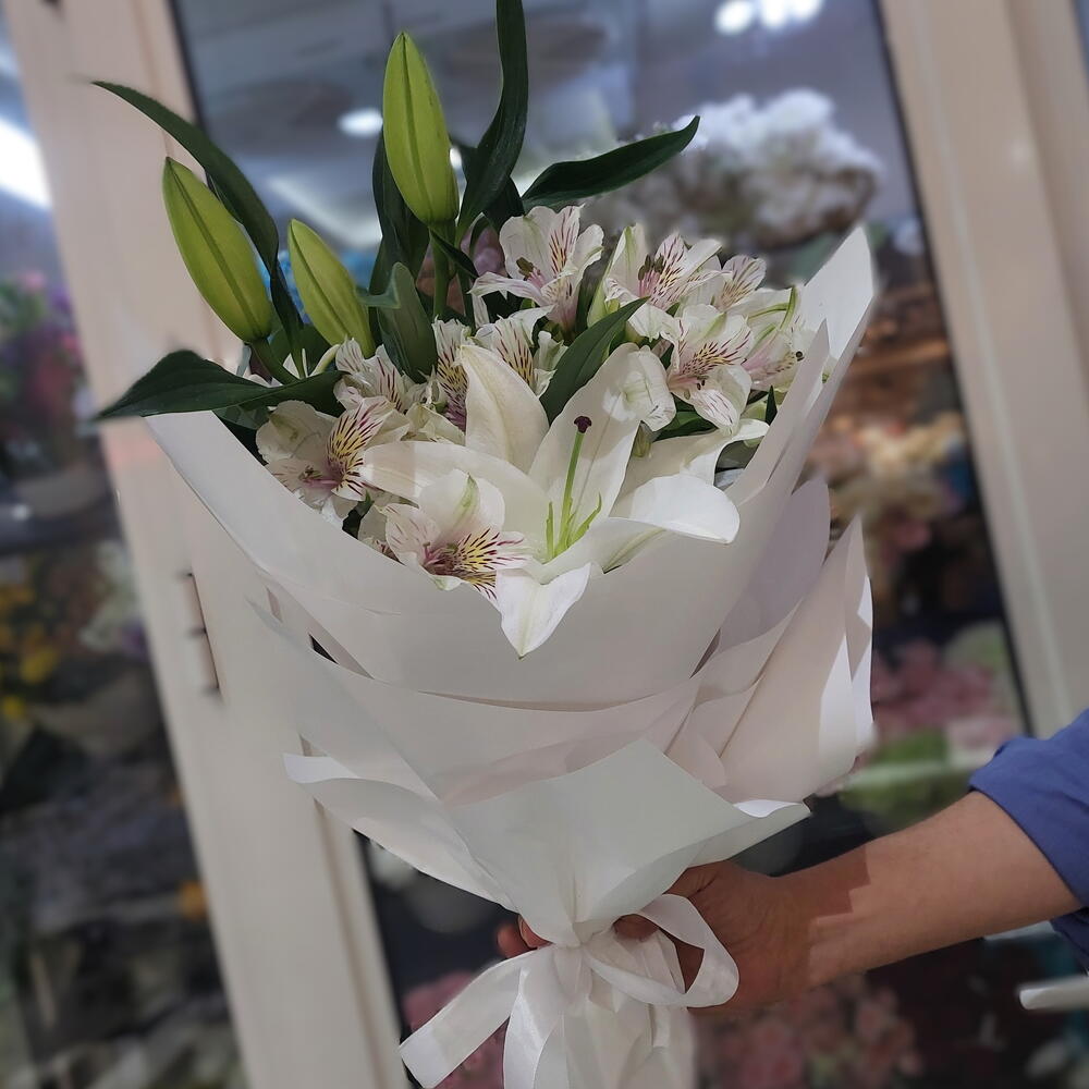 Snow Lily Grace Bouquet | White lilies and alstroemeria | Express and Reliable Delivery in Dubai