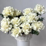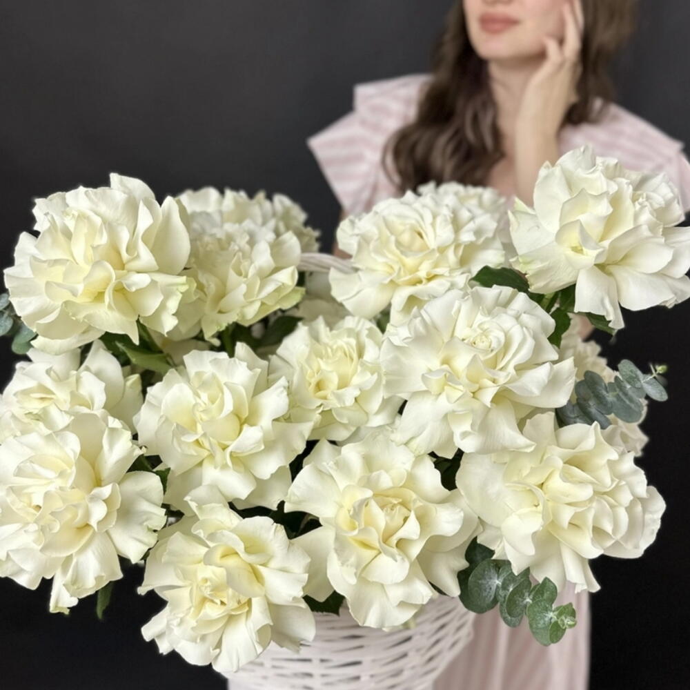 Give your loved one a bouquet of 51 snow white roses, reminiscent of delicate peony buds, carefully arranged in a stylish basket – a symbol of elegant luxury! Our team of professional florists creates arrangements with passion
