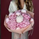 A bouquet full of soft beauty and delicate charm. Combining fluffy hydrangeas and luxurious peonies, this arrangement speaks in the language of tenderness. Perfect for a birthday, a romantic surprise, or simply to say: “You are beautiful.”