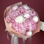 Soft and Pink: Bouquet of Pink Hydrangea and White Peonies