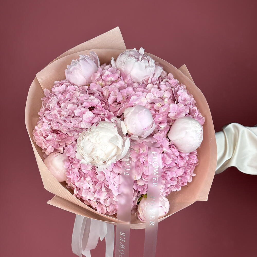 Soft and Pink: Bouquet of Pink Hydrangea and White Peonies