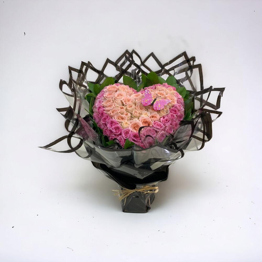 Indulge yourself or make someone elses day with our Florists Special, an exquisitely designed bouquet. Comprising of 18 pristine spray roses delicately nestled amongst a background of 12 lush ruscus leaves, the arrangement is thoughtfully punctuated with a singular charming butterfly. The bouquet is tastefully wrapped in 12 elegant wrappings, and to complete the heartfelt expression, one special card is included for your personalized message. This masterpiece is a true embodiment of both natures beauty and florists artistry.