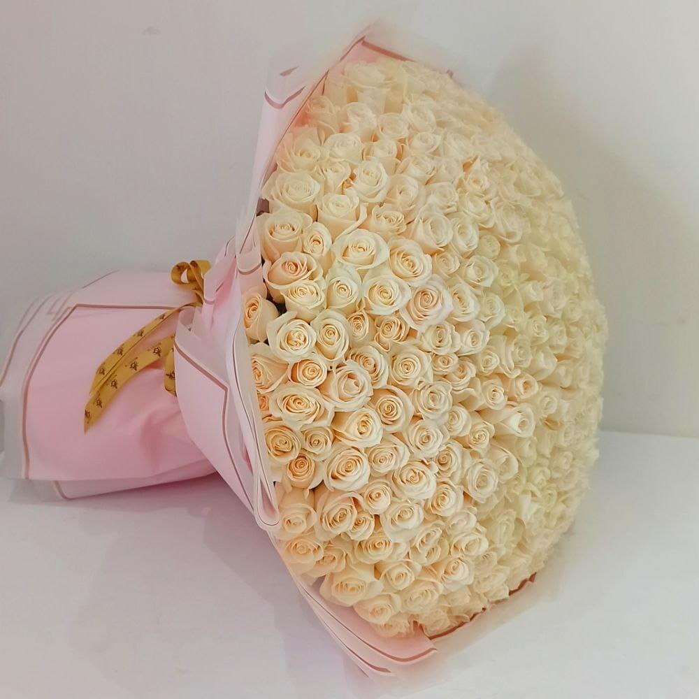 Dive into a magical floral world with our Florists Special collection. This exquisite set features a lush array of 300 stunning roses, carefully handpicked for their delicate beauty and captivating aroma. Each bouquet is thoughtfully wrapped in 8 pcs of tasteful wrapping, adding an elegant touch to the overall design. Plus, it comes with a beautiful card to express your sentiments uniquely. Crafted with utmost love and care, this floral assembly is a splendid gift that spellbinds with its overwhelming charm and grace.