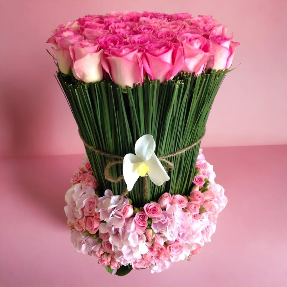 Immerse in the enchanting symphony of nature with our Florists Special bouquet. It is crafted with a luxurious collection of 20 exquisite roses to express deep love and gratitude. Highlighting 2 premium hydrengias to evoke a sense of charm and grace, it also adds 5 playful spray roses for an endearing touch. Every bundle is adorned with 5 stalks of steel grass accentuating a delicate sophistication, and a single enchanting orchid, a symbol of beauty and strength. To crown this mesmerizing ensemble, each arrangement comes with a personalised card, making it a perfect gift to express your heartfelt sentiments on any occasion.