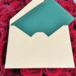 Elegant teal postcard from Roses by Rojan, Perfect for personal messages with floral gifts.