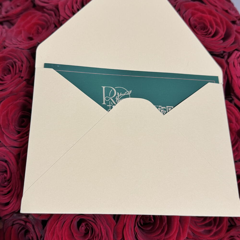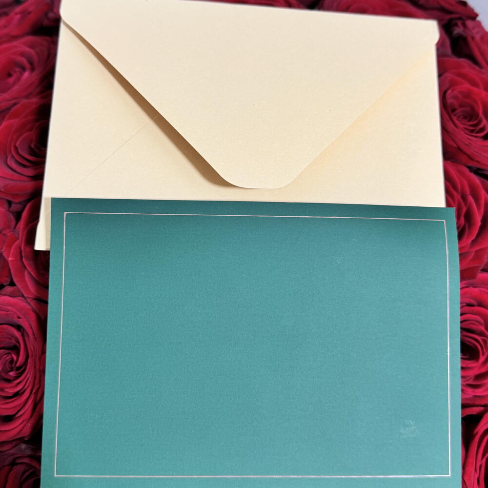 Elegant teal postcard from Roses by Rojan, Perfect for personal messages with floral gifts.
