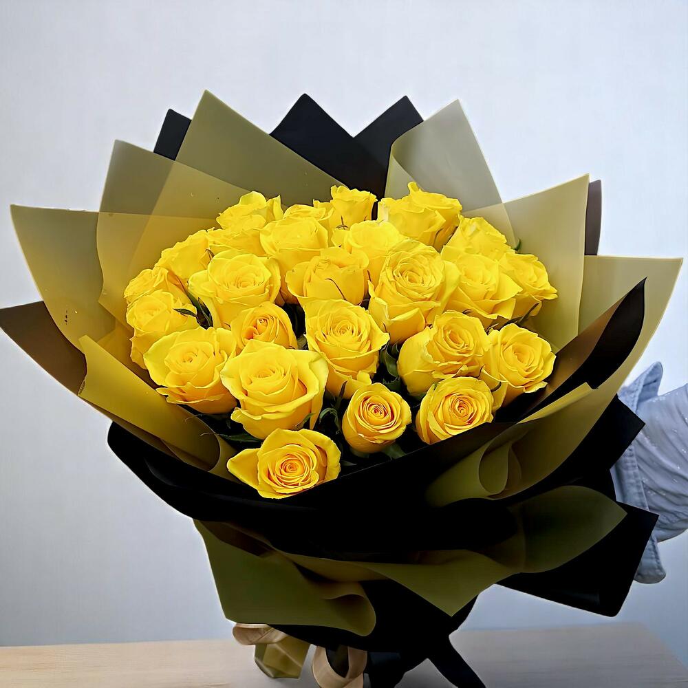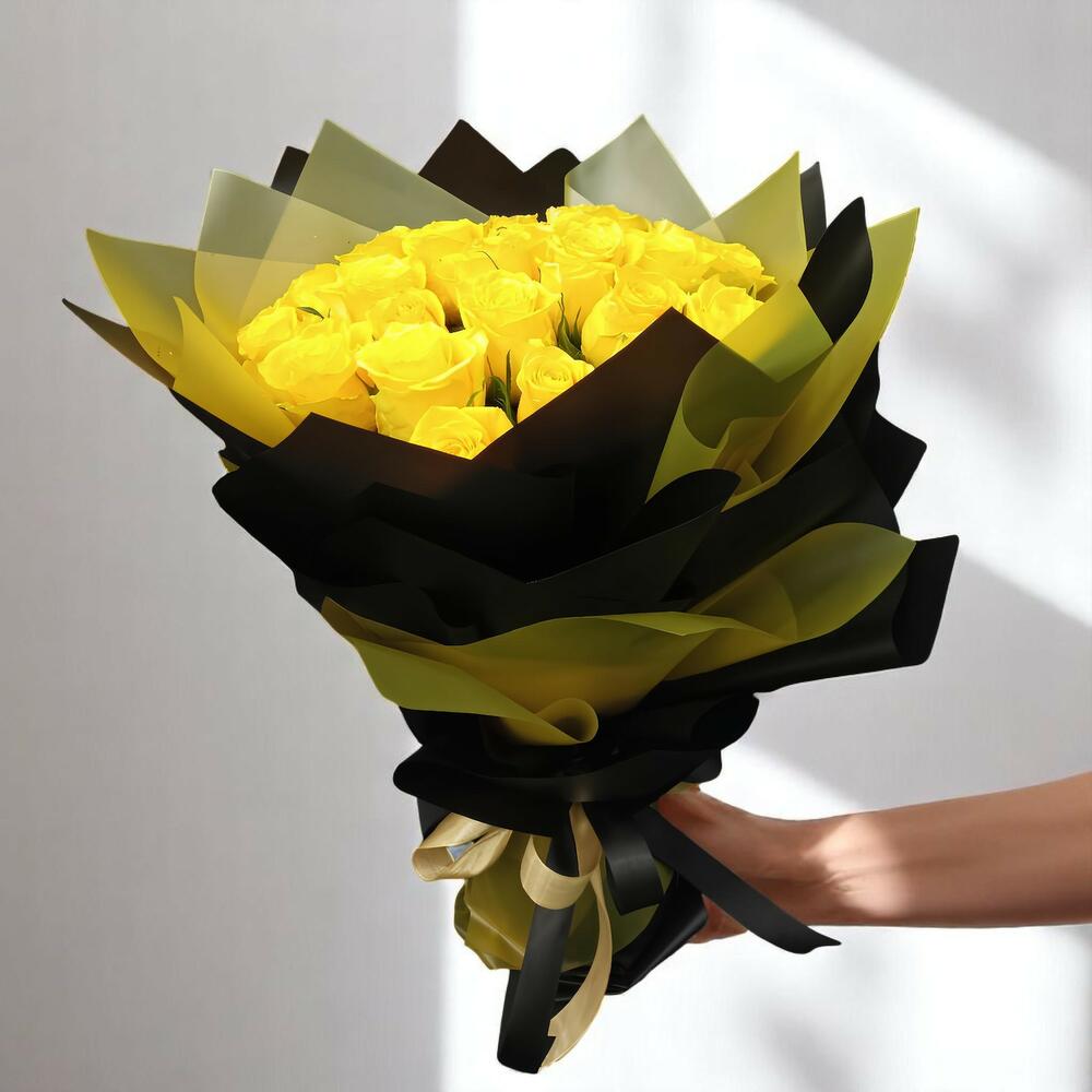 A vibrant bouquet of yellow roses, radiating warmth and joy, perfect for brightening any occasion