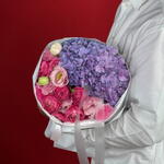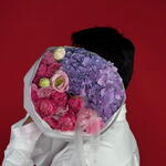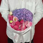 Eustoma - 2 pcs rose - 2 pcs spray roses - 3 pcs hydrangeas purple - 1 pcs