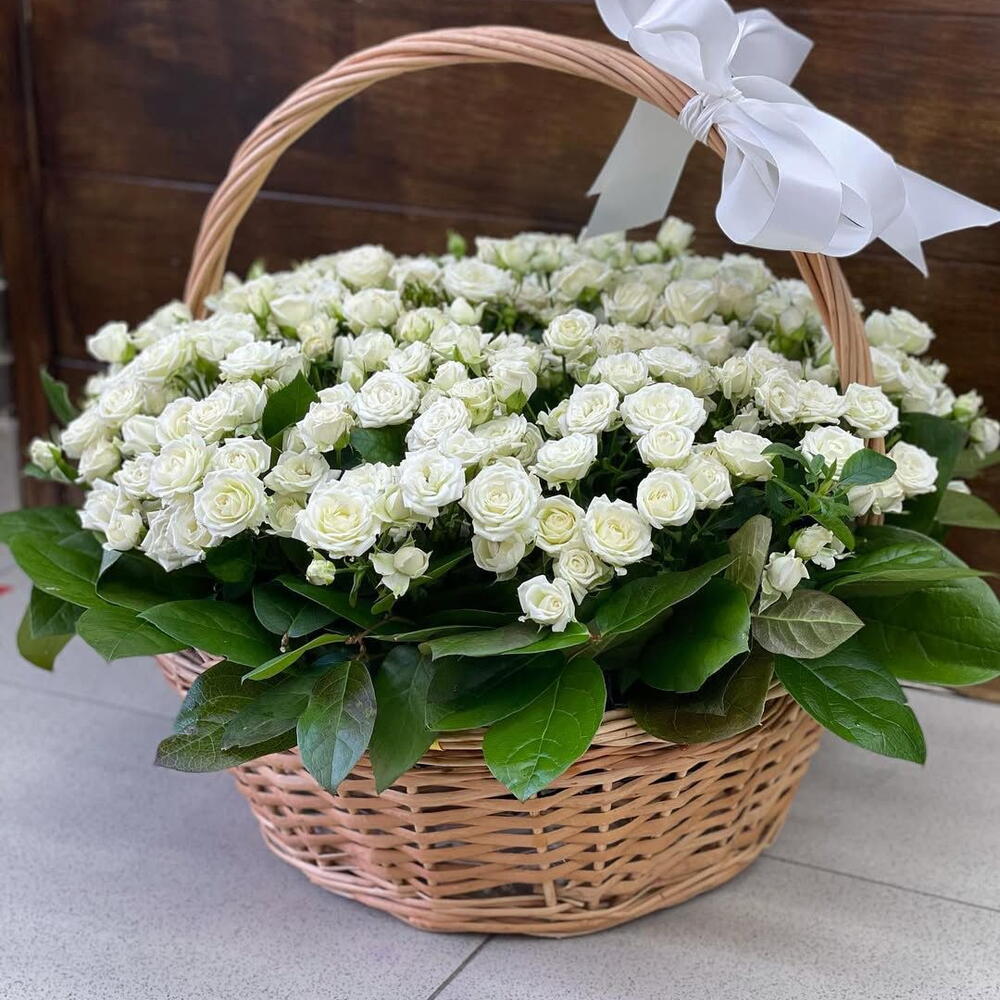 in a medum basket - 1 pcs spery white roses - 31 pcs