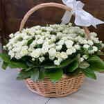 SSPERY WHITE ROSES IN A MEDUM BASKET