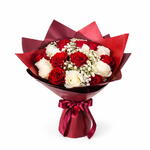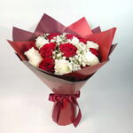 Red rose - 9 pcs rose white - 9 pcs gypsophila white - 5 pcs