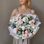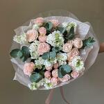This bouquet is one of the winning gift options! It is universal - suitable for any occasion. For bright surprises and official events, for romantics and conservatives. If you want to guess with a bouquet, this bouquet is a great option!One stem of spray roses may have 3 or 4 flowers.
