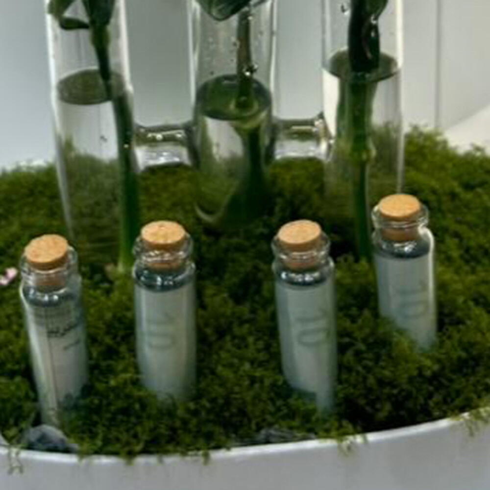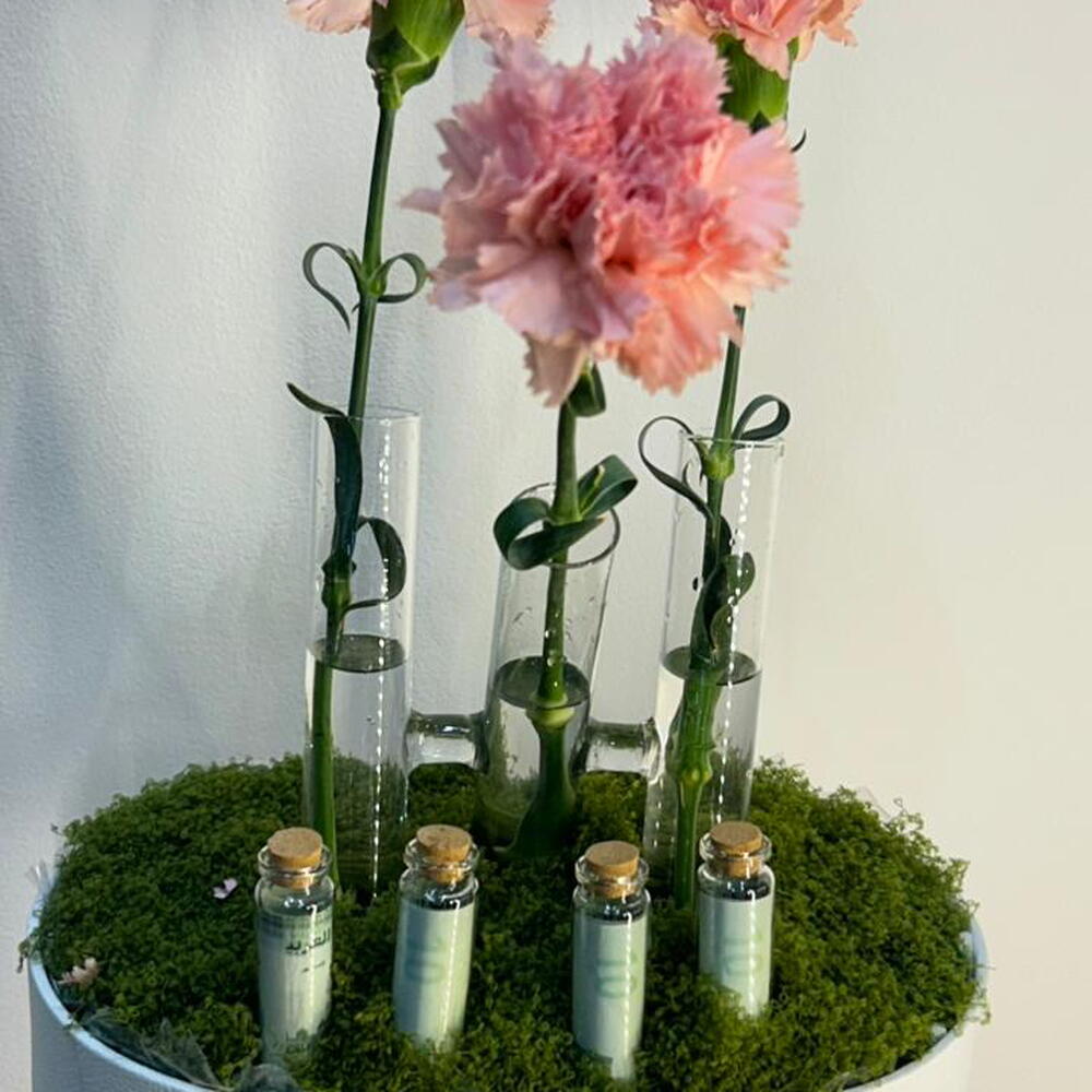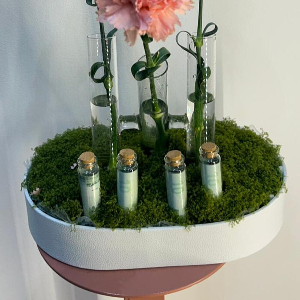 pink carnations - 3 pcs money bottle - 4 pcs glass tube - 1 pcs