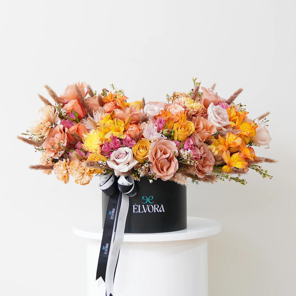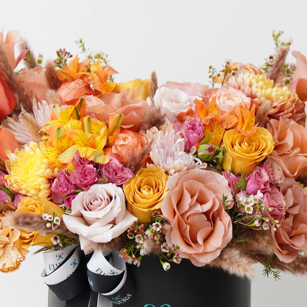 This arrangement carries the warmth of late afternoon light. Golden roses tones create depth, while softer blooms lift and balance the composition. The atmosphere it creates feels generous and open. The story here is one of abundance of rooms filled with warmth, shared energy, and quiet optimism. It brightens interiors in a way that feels natural and effortless.