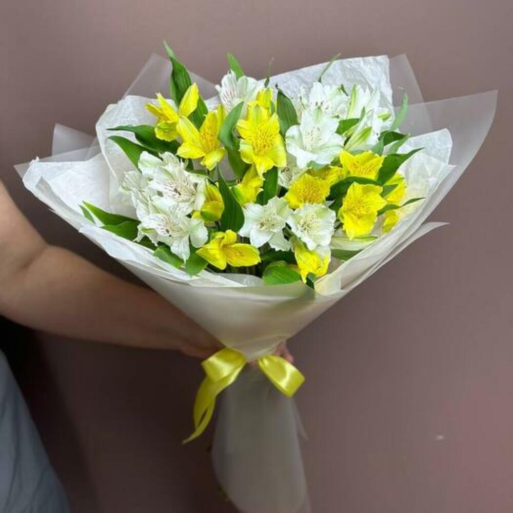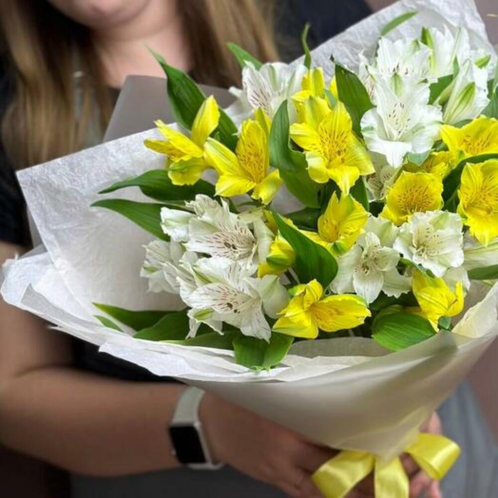 Bask in the warmth of our Alstroemeria Bouquet, where delicate white and vibrant yellow alstroemerias intertwine in a joyful symphony of colors. This arrangement radiates optimism and charm, making it an ideal choice to brighten someones day or celebrate lifes special moments.