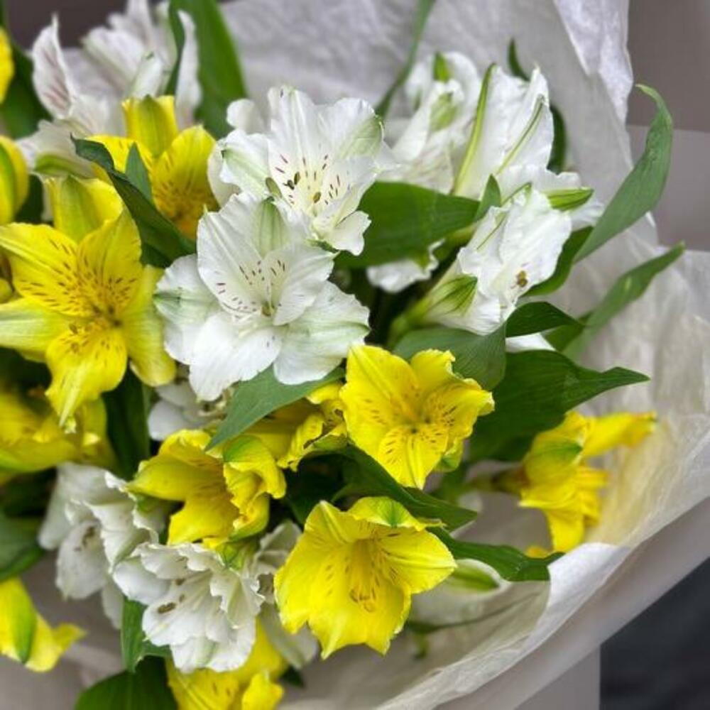 Bask in the warmth of our Alstroemeria Bouquet, where delicate white and vibrant yellow alstroemerias intertwine in a joyful symphony of colors. This arrangement radiates optimism and charm, making it an ideal choice to brighten someones day or celebrate lifes special moments.
