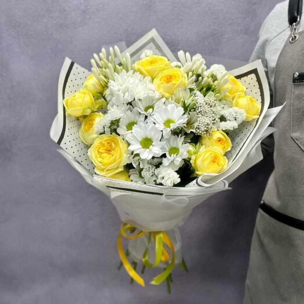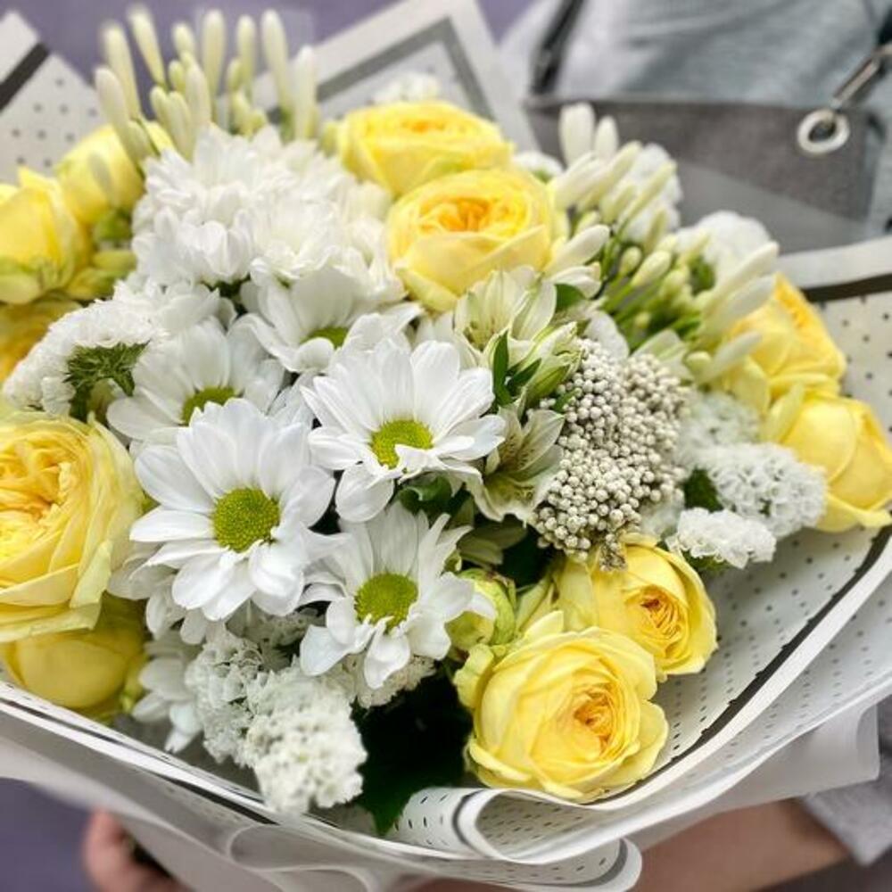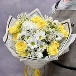 Sunny bouquet with roses and daisies