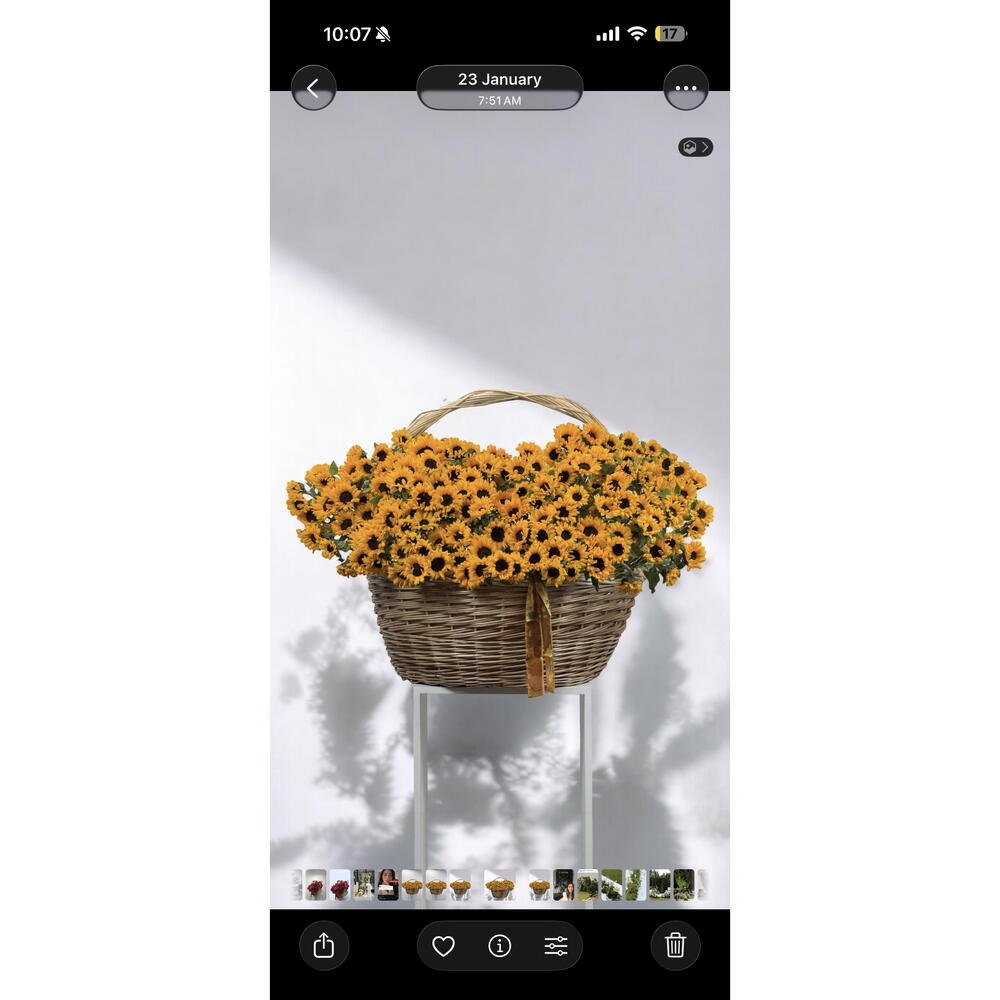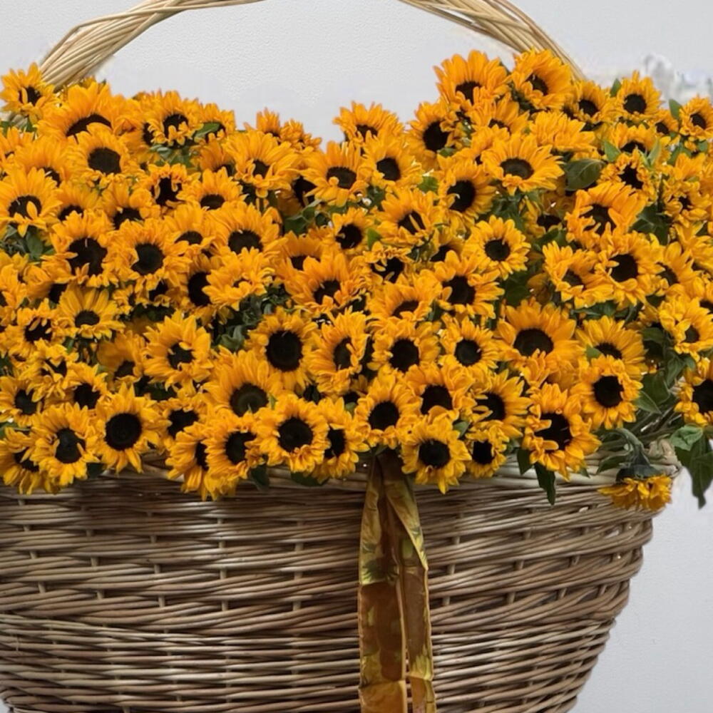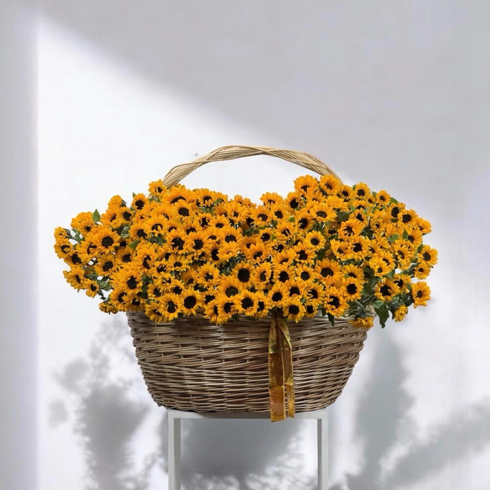 A vibrant overflow of sunflowers in a handcrafted wicker basket — bold, joyful, and full of warmth. Perfect for birthdays, congratulations, or simply to brighten someone’s day. 🌻✨