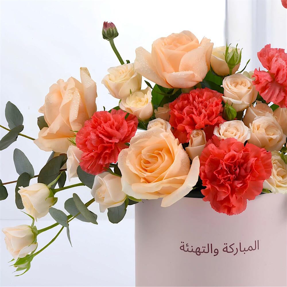 A stunning blend of warm peach and vibrant orange hues, this floral arrangement embodies elegance and joy. Designed to make birthdays even more special, this exquisite box is a perfect way to express love, happiness, and heartfelt wishes. ✨ Please note: The box of this arrangement can be customized in different colors upon request. Available options include: White, Desert Sand, Sand Theme, Red Theme, Black Theme, and Black.