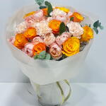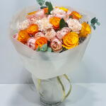 carnation - 3 pcs orange rose - 10 pcs peony type rose - 5 pcs
