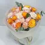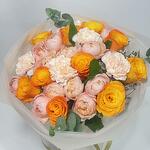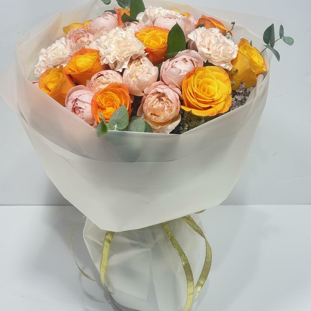 orange rose - 10 pcs garden type spray rose - 5 pcs carnaton - 5 pcs