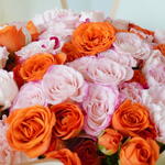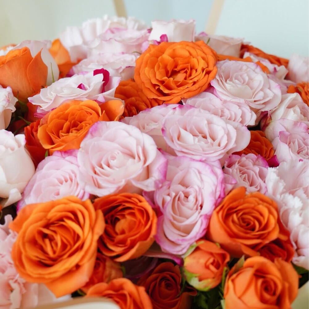 Enchant your senses with our exquisite Mono Bouquets. Each one is thoughtfully composed of 20 delicate pink roses, paired beautifully with 21 effervescent orange roses. This combination promises a stunning visual and aromatic experience, making our bouquet the perfect expression of your sentiments. A touch of elegance, refinement, and affection in each petal.