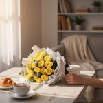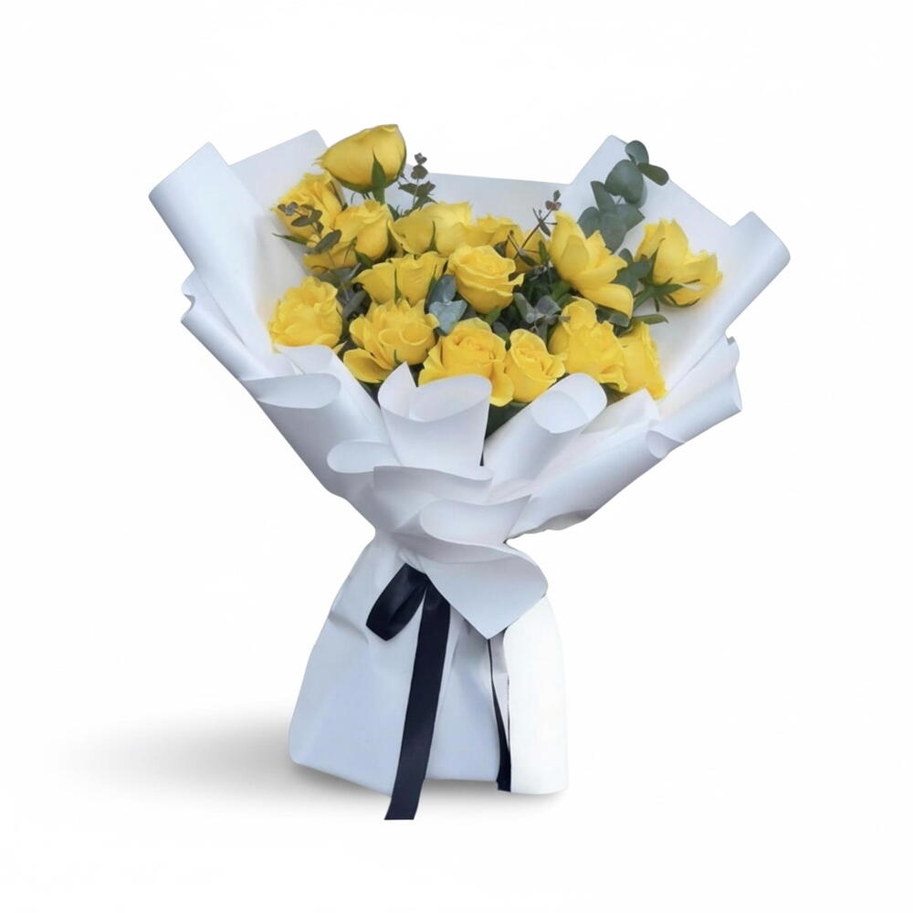 A vibrant bouquet of 15 radiant yellow roses, symbolizing joy, friendship, and warmth. Perfect for brightening someones day with a touch of golden elegance.
