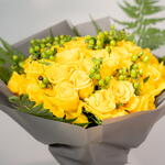rose yellow - 30 pcs leather fern - 4 pcs hypericum green - 10 pcs