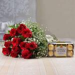 11 red roses with 16 pcs fererro chocolate combo