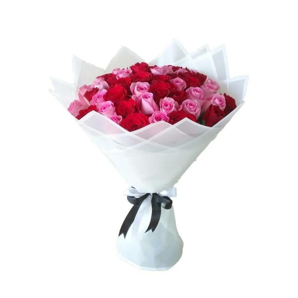 51 Red Roses 50 Pink Roses White Wrapping Black Ribbon Bow