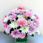 carnation pink - 5 pcs spray carnation pink - 3 pcs chrysanthemums white and pink - 4 pcs