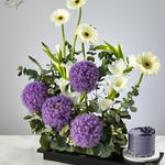 Gerbera - 4 pcs Lisianthus - 3 pcs cake - 300 g allium - 4 pcs greeneries - 1 pcs