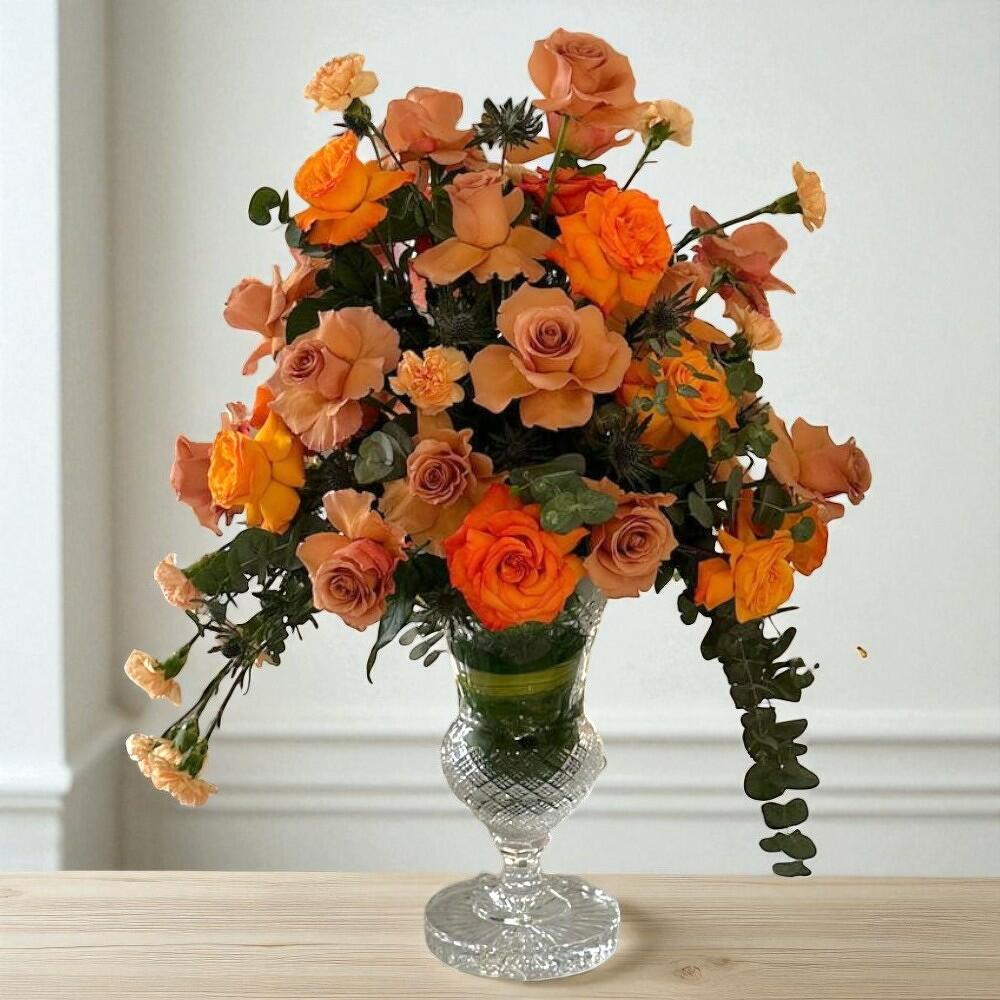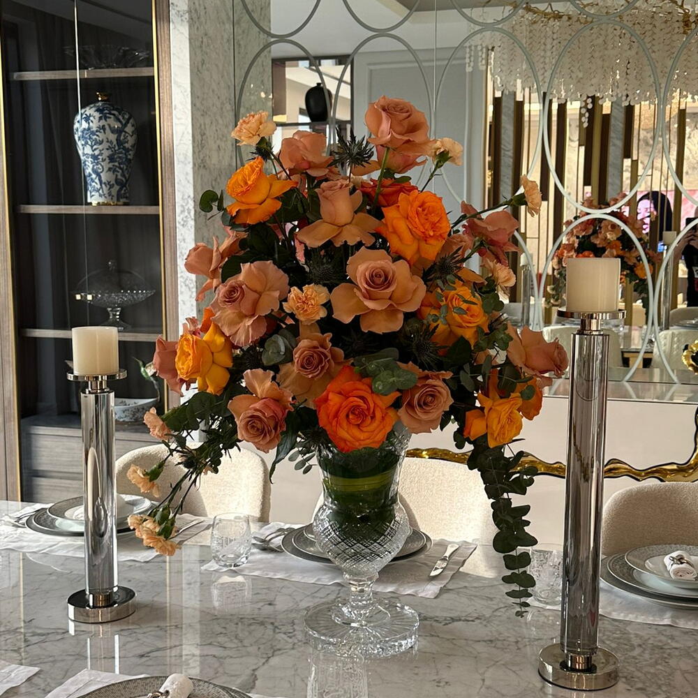 carnation - 20 pcs eucaley - 5 pcs copechuna rose - 24 pcs caas roses - 24 pcs g vase - 1 pcs